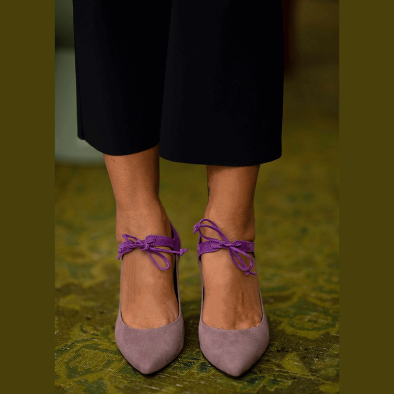 Lucrezia è il décolleté che conquista con il suo stile raffinato e il dettaglio femminile del laccio alla caviglia. La punta affusolata slancia la figura, mentre il tacco sottile aggiunge eleganza senza rinunciare alla stabilità. Perfetta per chi vuole distinguersi con grazia e carattere.